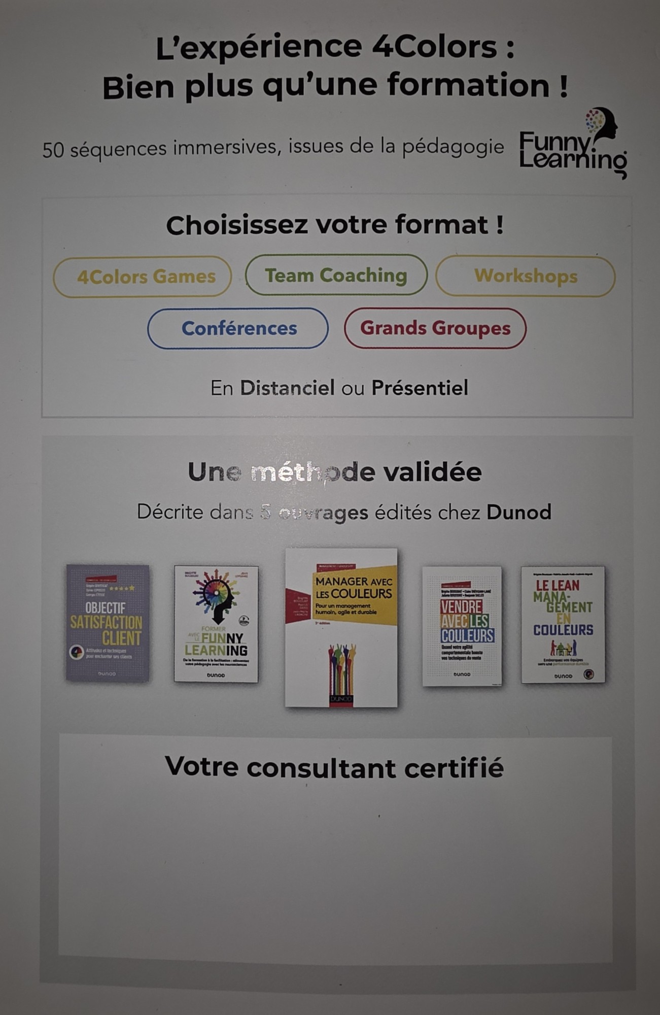 Nos brochures commerciales 4Colors présentent de façon claire et visuelle la méthode DISC-4Colors, ses applications concrètes et ses bénéfices pour les entreprises. Modernes, colorées et faciles à partager, elles valorisent vos offres de formation, de coaching et de conseil. Outil idéal pour convaincre vos prospects et clients, ces supports professionnels reflètent l’esprit humain, dynamique et innovant de la communauté 4Colors.